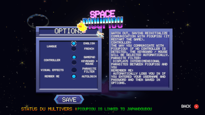 Pour finir, la chosequi m’a vraiment, mais VRAIMENT pris le plus de temps, c’est la maniabilité à la manette dans les menus ! J’assure que c’est une vraie plaie. l’UX est une plaie, un gouffre de temps insondable. Je pense avoir passé 2/3 du temps de programmation sur l’intégration des contrôles à l’UX … Autant il faut parfois peu de choses pour rendre un menu sympa, , autant l’inverse est vrai aussi. C’est un travail ergonomique auquel je n’ai pas aimé m’attarder car je voulais tout simplement programmer du contenu. Mais c’est une tâche obligatoire malheureusement. J’ai du réfléchir à un menu pour :