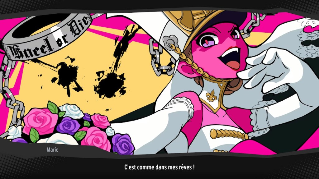 Si la trame principale n’a rien d’exceptionnel, elle se suit sans déplaisir, notamment grâce à l’écriture efficace des personnages et aux moments dramatiques qui, contre toute attente, fonctionnent bien avec le style chibi adopté par Hanako Oribe, Shiginori Soejima et Kazuhisa Wada (source : https://personacentral.com/persona-team-art-unit-interview-p5t-p3r/ ) . J’étais sceptique au début, pensant que ce choix visuel casserait la tension dramatique… et finalement, pas du tout. Au contraire, il accentue même certaines scènes du climax, qui m’a vraiment tenu en haleine. Les inspirations pour les Royaumes vont quant à eux de la révolution française fantasmée, à un Japon féodal où Big Brother y a élu domicile. Je vous laisse découvrir les derniers environnements, mais il y en a 5 en tout.