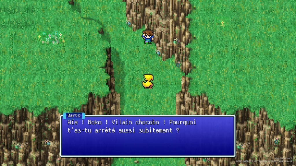 Je me souviens encore de ce sentiment étrange : j’étais un gamin qui découvrait le monde interdit de l’émulation. Je n’avais pas internet, j’avais peur de flinguer le PC familial avec un virus. Pendant que mes amis parlaient de Cloud qui parcours un Midgar steampunk techno-futuriste dans Final Fantasy VII sur leur PlayStation, moi j’explorais les cristaux médiévaux de FFV, dans une version traduite avec un anglais… approximatif. Mon frère, deux classes au-dessus, m’aidait à comprendre les dialogues ! Il n’était pas rare que des passages entiers n’étaient pas traduits, nous étions totalement perdu. Mais à force de persévérance et de hasard, nous arrivâmes à le finir, non pas sans quelques sauvegardes automatiques que l’émulateur permettait.