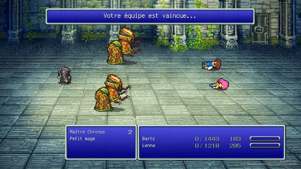 Il n’est absolument pas rare de se faire décimer par un simple trash mob. J‘ai piqué des accès de colères plusieurs fois put*** ! Il suffit d’un coup raté qui donne l’initiative à l’ennemi pour se faire rosser. Le nombre de fois ou vous ratez vos attaques est abominable. L’adversaire peut avec une simple attaque folie, retourner un personnage contre vous, qui vous décime en une attaque. Heureusement, le Pixel Remaster ajoute une sauvegarde rapide au début de chaque zone, et la possibilité de multiplier l’XP et les Ability Points (les points de job). Résultat : chaque défaite est beaucoup moins punitive. Vous perdez, au pire, 15 minutes, contre des heures autrefois. Bien que critiquable, ça garde une tension constante : impossible de se relâcher sous peine de décès prématuré… mais bordel que c’est frustrant de se faire trucider comme une merde !!